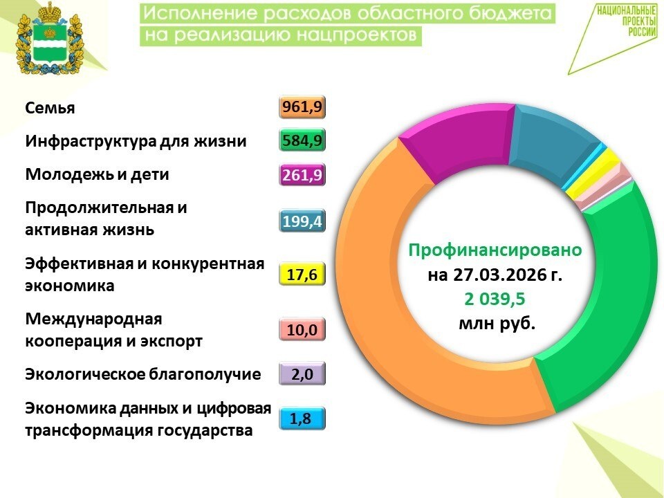 ✍️ В соответствии с уточненной сводной бюджетной росписью областного бюджета на 2026 год на реализацию национальных проектов в 2026 году предусмотрено 14 108,9 млн рублей. 🚩 Финансирование национальных проектов по состоянию на 27.03.2026 года составило 2 039,5 млн рублей. Губернатор Владислав Шапша в МАХ: https://max.ru/Shapsha_VV Авдеева Валентина Ивановна в МАХ: https://clck.ru/3Rnmn2 ##Национальныепроекты #Национальныепроекты@minfinko