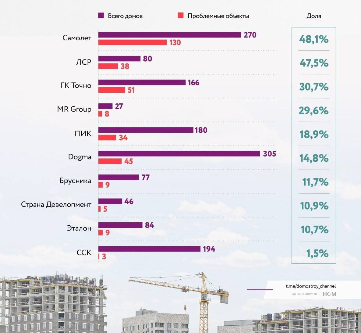 Самолет и ЛСР срывают сроки в половине строек 💩 Тройку антилидеров замыкает застройщик Точно, который оказался совсем не точным при сдаче домов (30,7% строек с задержкой). Хорошая новость: наконец-то с 2027 года возвращаются штрафы за срыв сроков сдачи — опоздунам придётся платить. Плохая новость: эти штрафы застройщики заложат в цену квартир. Именно у антилидеров рейтинга они вырастут больше всего?