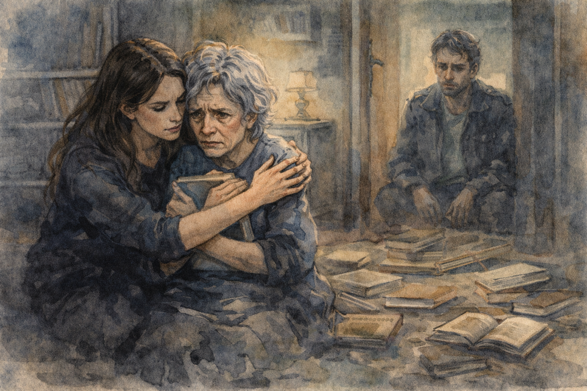 То, что я увидела, заставило меня замереть. Нина Семёновна сидела на полу в гостиной, окружённая книгами. Она бормотала, судорожно листая страницы одной из них, но её взгляд был пустым и испуганным. Она не узнавала свои книги.