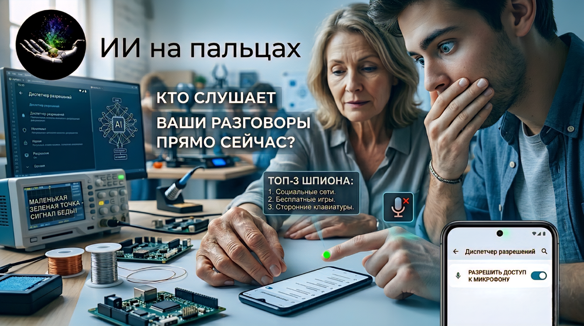 Вы когда-нибудь замечали: стоит только вскользь обсудить с другом покупку новых кроссовок или поездку на Алтай, как через полчаса лента соцсетей пестрит именно этими предложениями? Нет, это не магия и не чтение мыслей. Это работа алгоритмов, которые буквально «держат ушки на макушке». Пока ваш телефон мирно лежит на столе экраном вниз, внутри него кипит жизнь. Давайте разберемся, как заставить «шпиона» замолчать. Большинство приложений получают доступ к микрофону легально — вы сами дали его при установке. Но если мессенджеру микрофон нужен для аудиосообщений, то зачем он фонарику, калькулятору или простому фоторедактору? Они используют акустические триггеры. Приложение не пишет ваш голос 24/7 (это слишком тяжелый файл), оно ждет ключевых слов: «купить», «хочу», «цена», «отпуск». Как только триггер сработал — информация улетает на сервера рекламных сетей. 1. Ревизия «лишних ушей» Заходим в настройки и безжалостно отсекаем лишнее: 2. Маленькая зеленая точка (Ваш главный союзник)
