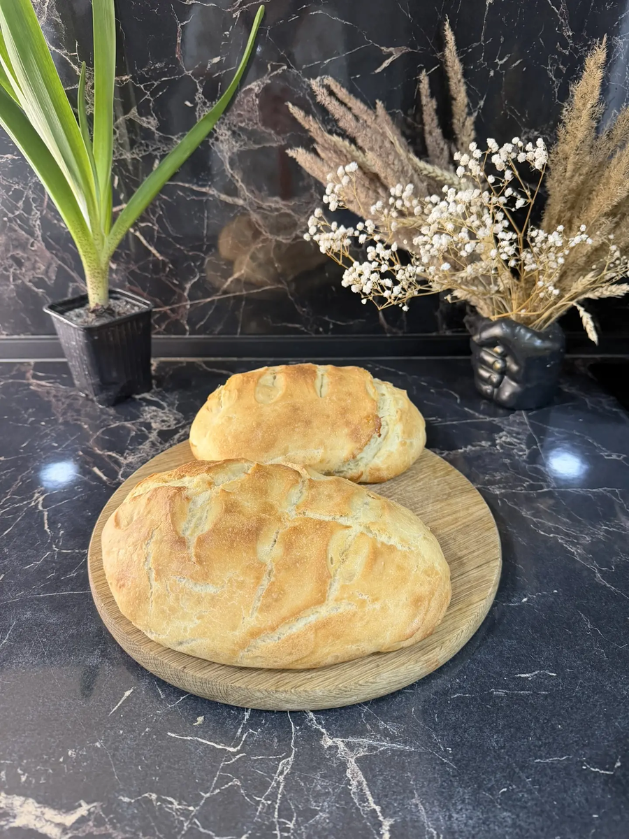 Приготовим вкусный хлеб. Ингредиенты - Тёплая вода — 500 мл (35°C). - Быстродействующие дрожжи — 10 г. - Сахар — 1 ст. л. - Соль — 1 ч. л. (с горкой). - Растительное масло — 3 ст. л. - Мука — 800 г. Процесс приготовления: 1. Подготовка опары В тёплой воде растворите соль, сахар и дрожжи. Перемешайте до полного растворения. 2. Замес теста Постепенно добавляйте просеянную муку, влейте растительное масло и замесите плотное, эластичное тесто. Оно не должно липнуть к рукам. 3. Первый подъём Оставьте тесто в тёплом месте на 30 минут, чтобы оно увеличилось в объёме. 4. Формовка и подготовка к выпечке Обомните тесто, разделите на две части (если хотите получить два хлеба). Сформируйте буханки, переложите их в рукав для запекания, сделайте сверху небольшие надрезы для выхода пара. 5. Выпекание Разогрейте духовку до 180°C. Поместите хлеб в рукаве на противень и выпекайте 30 минут до румяной корочки. 6. Подача Достаньте хлеб из духовки, дайте немного остыть, затем аккуратно разрежьте рукав и