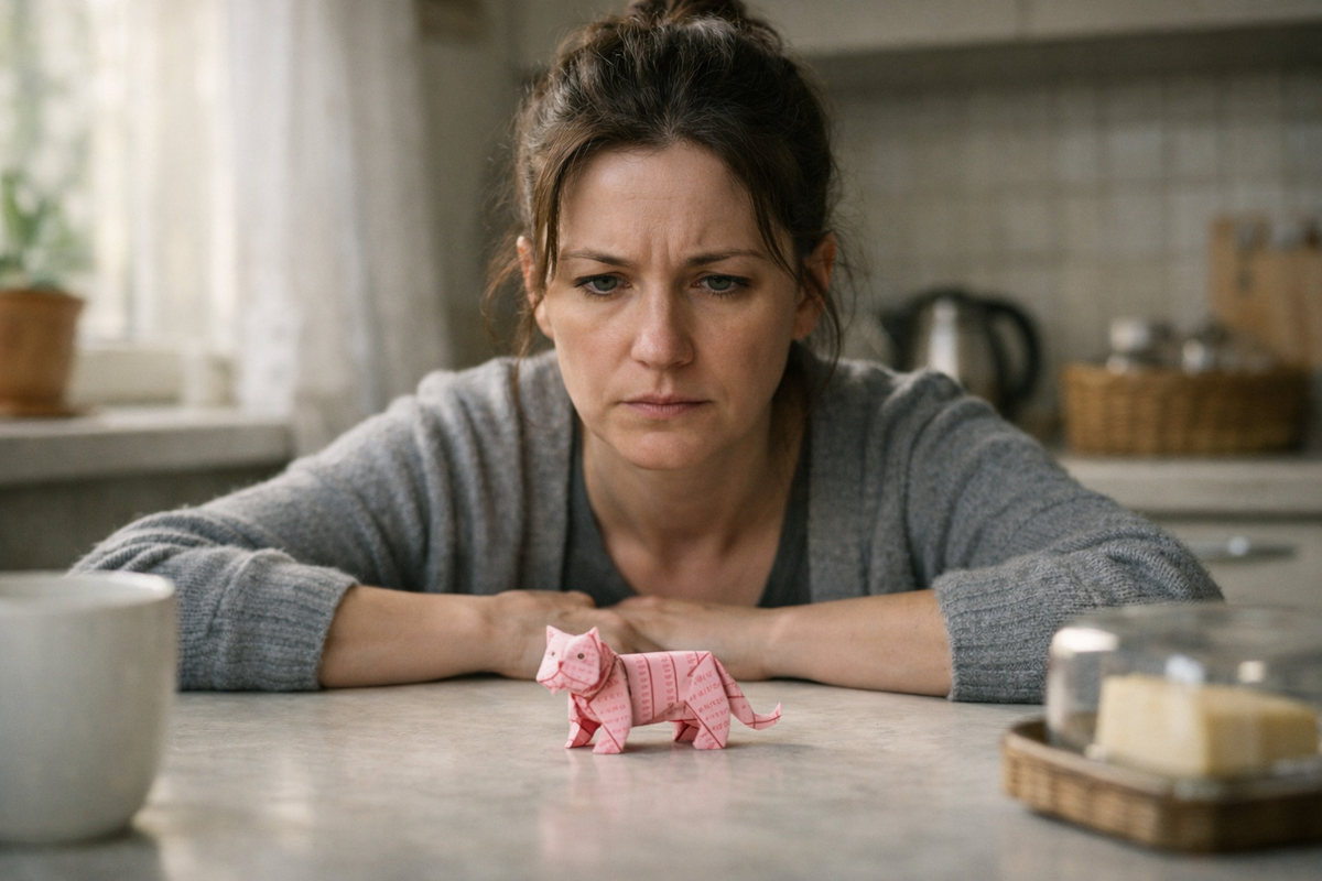 Внутри лежали бумажные фигурки. Тигр. Лиса. Птица с острым хвостом. Ещё один тигр, уже из банковского уведомления. Рыба из рекламного листка. Аккуратные, плотные, почти красивые. Она села прямо на низкую табуретку, потому что ноги вдруг стали ватными, и начала разбирать бумаги по одной.
