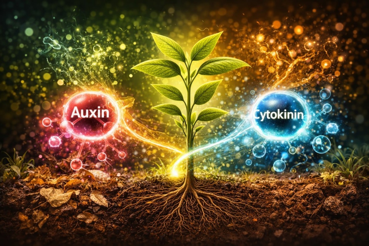 Органическое питание влияет на растения не только через поступление элементов. Ключевой эффект реализуется через почвенную микробиоту, которая активно реагирует на приток органического вещества и становится источником биологически активных соединений, включая гормоноподобные вещества. Многие почвенные микроорганизмы способны синтезировать ауксины и цитокинины. Эти соединения выделяются в ризосферу и напрямую воздействуют на растение, усиливая деление клеток, стимулируя рост корней и развитие побегов. Фактически формируется дополнительный, «внешний» контур гормональной регуляции. При высоком уровне органического вещества и активной микробиоте этот эффект становится значимым фактором роста. Растение получает не только питание, но и постоянную гормональную стимуляцию, которая улучшает развитие корневой системы, повышает эффективность поглощения элементов и ускоряет восстановление после стрессов. При бедной органикой почве или низкой микробиологической активности этот механизм практичес