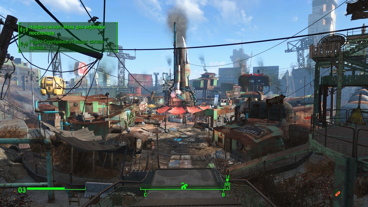 После спасения Ника путь стал более… понятным. Впервые за долгое время. Не просто идти вперёд. Не просто выживать. А двигаться к конкретной цели. И эта цель вела в одно место. Даймонд-Сити. Когда подходишь к нему впервые, он выделяется сразу. Не как очередная локация. А как что-то… живое. Огромные стены. Вход, который охраняют люди. Рынок, где много людей. После Пустоши это даже немного выбивает из колеи. Потому что ты уже привыкаешь к тишине. А здесь шум, разговоры, торговля. Настоящий город. На площади, увидел странную ситуацию, один парень направил на другого оружие, и кричал что он "синт". Охрана среагировала мнговенно, убив того, кто держал оружие. Не разбирательств, ничего... А когда подошел Ник, первое, что почувствовал это не безопасность, а напряжение. И это чувствуется сразу, взгляды, реплики, отношение. Даже здесь, за стенами, страх никуда не делся. Просто стал… тише. Мы прошли через рынок, мимо лавок, мимо жителей. И направились к кабинету детектива. Я рассказал Нику, о по