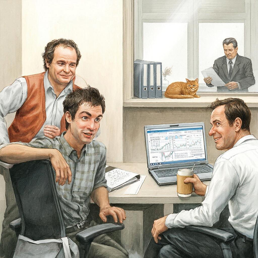 Костя развернулся всем корпусом, аж стул скрипнул. Я отложил отчёт, в котором всё равно ничего не понял, потому что там были цифры, а я уже к обеду забываю, сколько у меня пальцев на руках.
