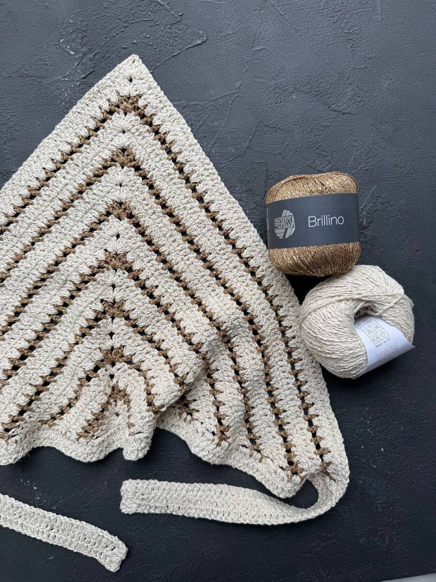 ! Косынку мы выбрали классического кроя, но с интересными вставками люрекса. Она получилась яркой, интересной и универсальной: подойдет как к джинсовке, так и к пальто или тренчу. Участие в совместнике бесплатное при покупке 🧶Двух мотков Infinity Design Cotton linen или Orion Yarns Cotlin 🧶Одного мотка Lana Grossa Brillino или Lang Lame soft Начало совместника 8 апреля🌸