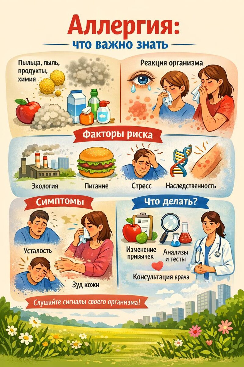 Сначала — лёгкая усталость. Потом появляется ощущение, что «что-то не так»: заложенность носа без причины, раздражение кожи, странная реакция на привычные продукты.