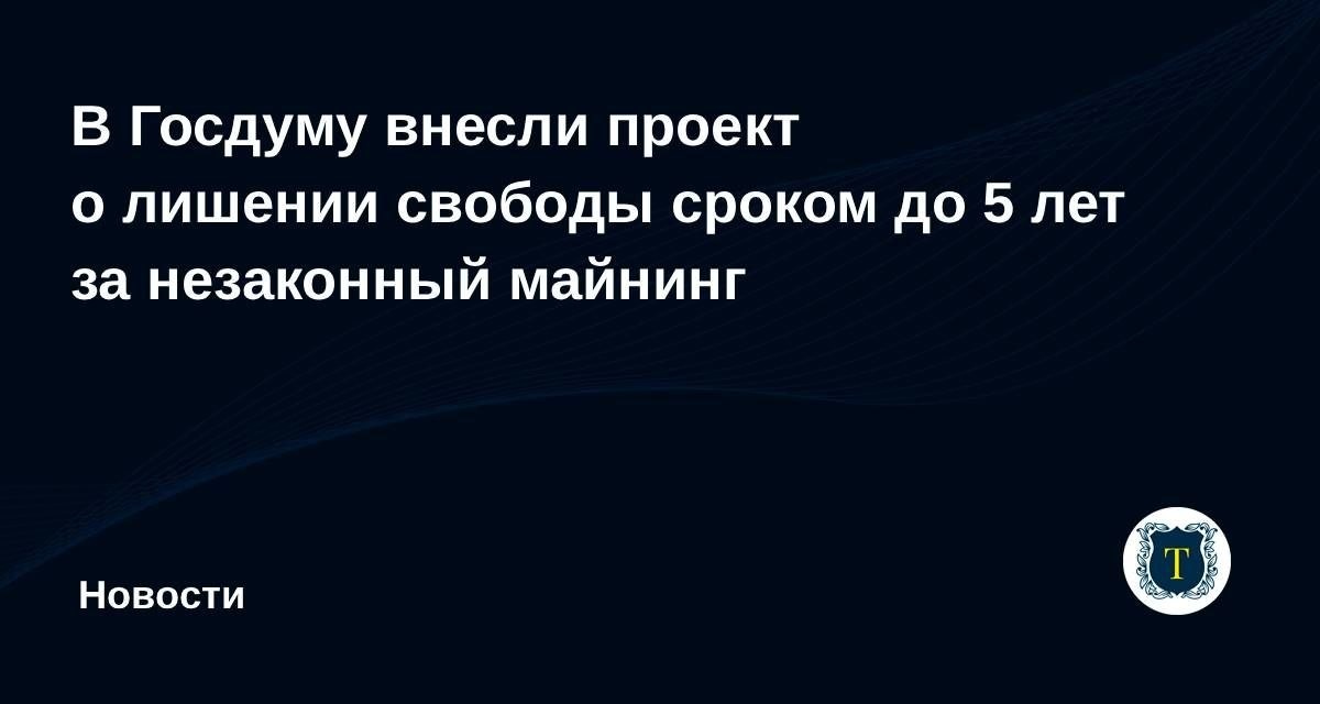 и лишение свободы сроком до 5 лет. Согласно данным налоговой службы, майнингом занимается около 50 тысяч субъектов, из которых зарегистрировано 1,5 тысячи. Законопроект зарегистрирован и направлен председателю Госдумы. Timofeev Group будет следить за развитием событий. https://timofeev.group/ #новости