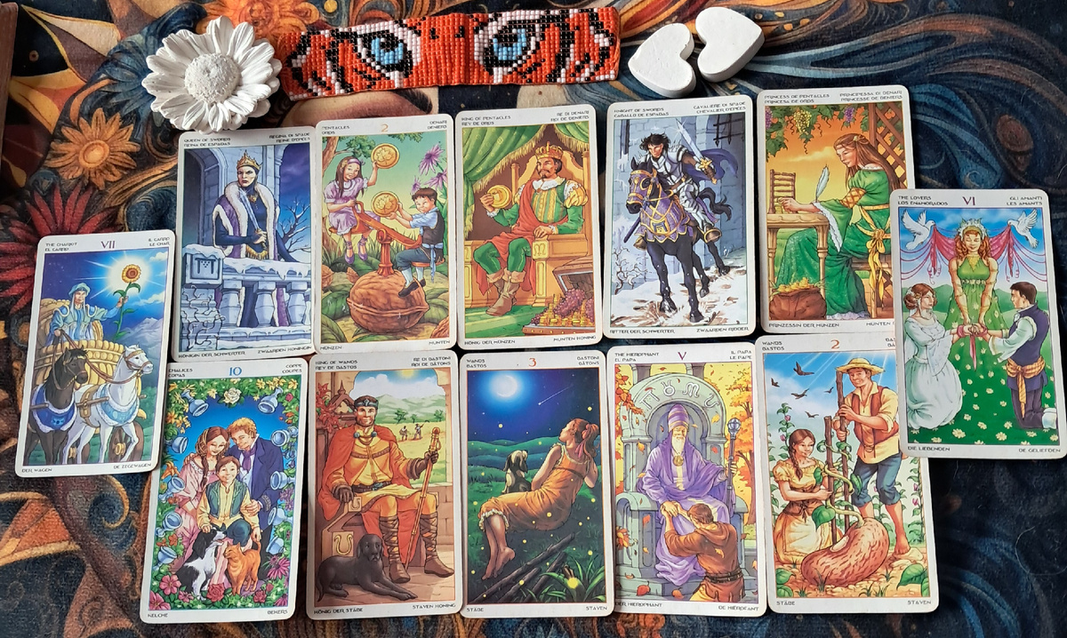 · Перспектива: очень серьёзная. 10 Кубков + Влюблённые + Иерофант говорят о возможности брака, создания семьи, глубокого взаимопонимания.💐