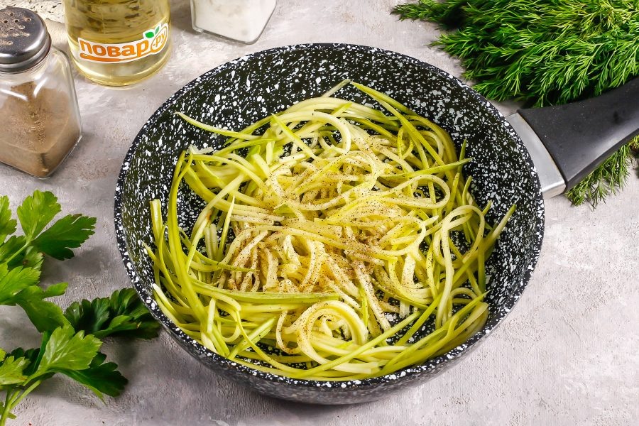 О, это наше спасение летом и осенью! Я беру обычную овощечистку или специальную спиралайзер (спиральная нарезка). Нарезаю кабачки длинной соломкой.
