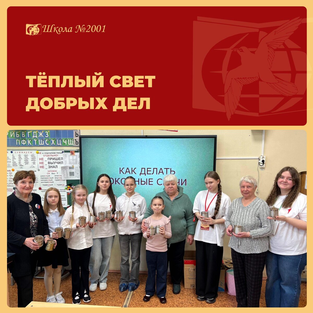 » За два занятия ребята создали более 60 свечей — тёплых огоньков, в каждом из которых забота, участие и поддержка. Ветераны провели для школьников настоящий мастер-класс и показали каждый этап работы. Старшие волонтёры продолжили начатое дело и уже залили парафином часть свечей. Подробностями делится советник директора Эльнара Баянова: «Именно такие встречи помогают ребятам не только освоить новые навыки, но и почувствовать, как важно помогать другим». Совсем скоро эти свечи отправятся нашим бойцам. Спасибо всем участникам за неравнодушие и доброе сердце. Маленькое дело каждого становится большой помощью для всех. #ДОНМ #Школа2001 #НашиЛица Все новости и события Школы №2001 — в нашем канале в МАХ