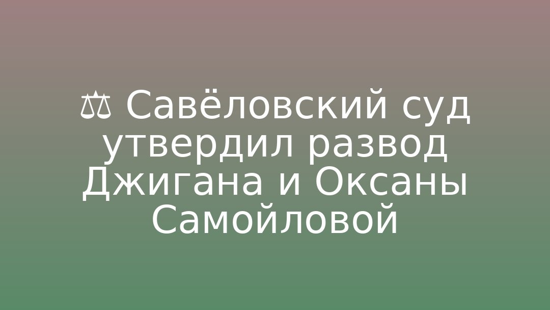 Оксаны Самойловой. Загородный дом остается за Джиганом при выплате компенсации Самойловой; две квартиры переходят Самойловой, одна — Джигану; автомобили остаются за текущими собственниками; ферма Самойловой не делилась. Вопрос проживания и содержания четверых детей на заседании не рассматривался. Решение может быть обжаловано в течение месяца. Интересы Самойловой представлял адвокат Олег Тонаканян. Заседание проходило в закрытом режиме.