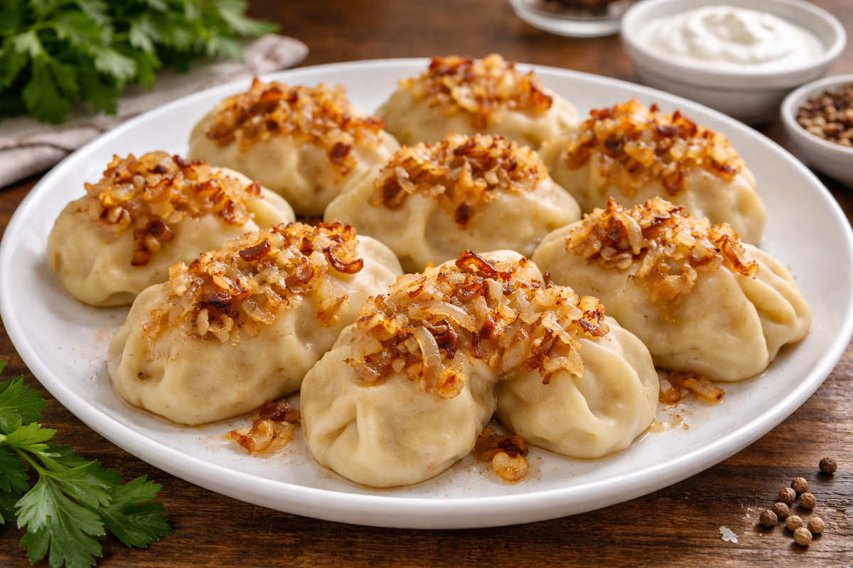 Откройте для себя совершенно новый вкус мантов: нежнейшее тесто, пикантные специи и карамелизированный лук – приготовление без пароварки.