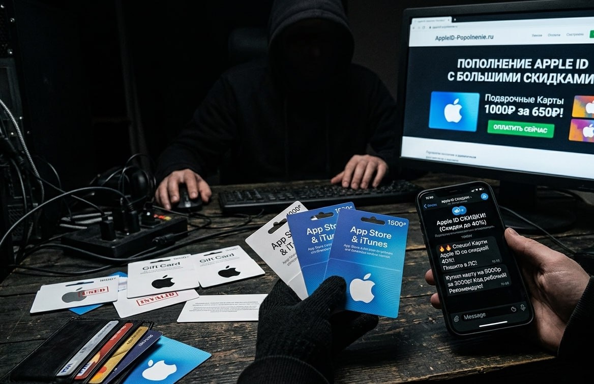 На фоне дефицита и роста цен на подарочные карты для пополнения Apple ID активизировались мошенники. Они предлагают «выгодные» карты со скидками через сомнительные сайты и мессенджеры, играя на желании людей сэкономить и получить доступ к сервисам Apple. 💳 Схем несколько: иногда продают карты, которые уже использованы или вовсе не существуют. В других случаях отправляют на фишинговые сайты, где воруют данные банковских карт, либо убеждают перевести деньги за несуществующий код. ⚙️ Железный Пульс | 🧭 Навигация