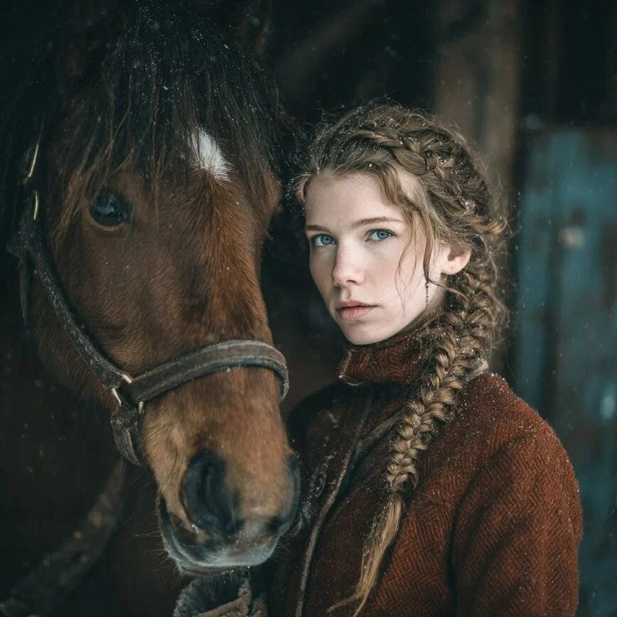 Когда Кира подошла ближе, она увидела лошадей в загонах. Людей не было видно. И она ввалилась в тяжёлую деревянную дверь, откуда раздавался женский голос. Внутри пахло сеном, теплом, лошадьми и ещё чем-то неуловимо домашним – овчиной, старым деревом, печным дымом.