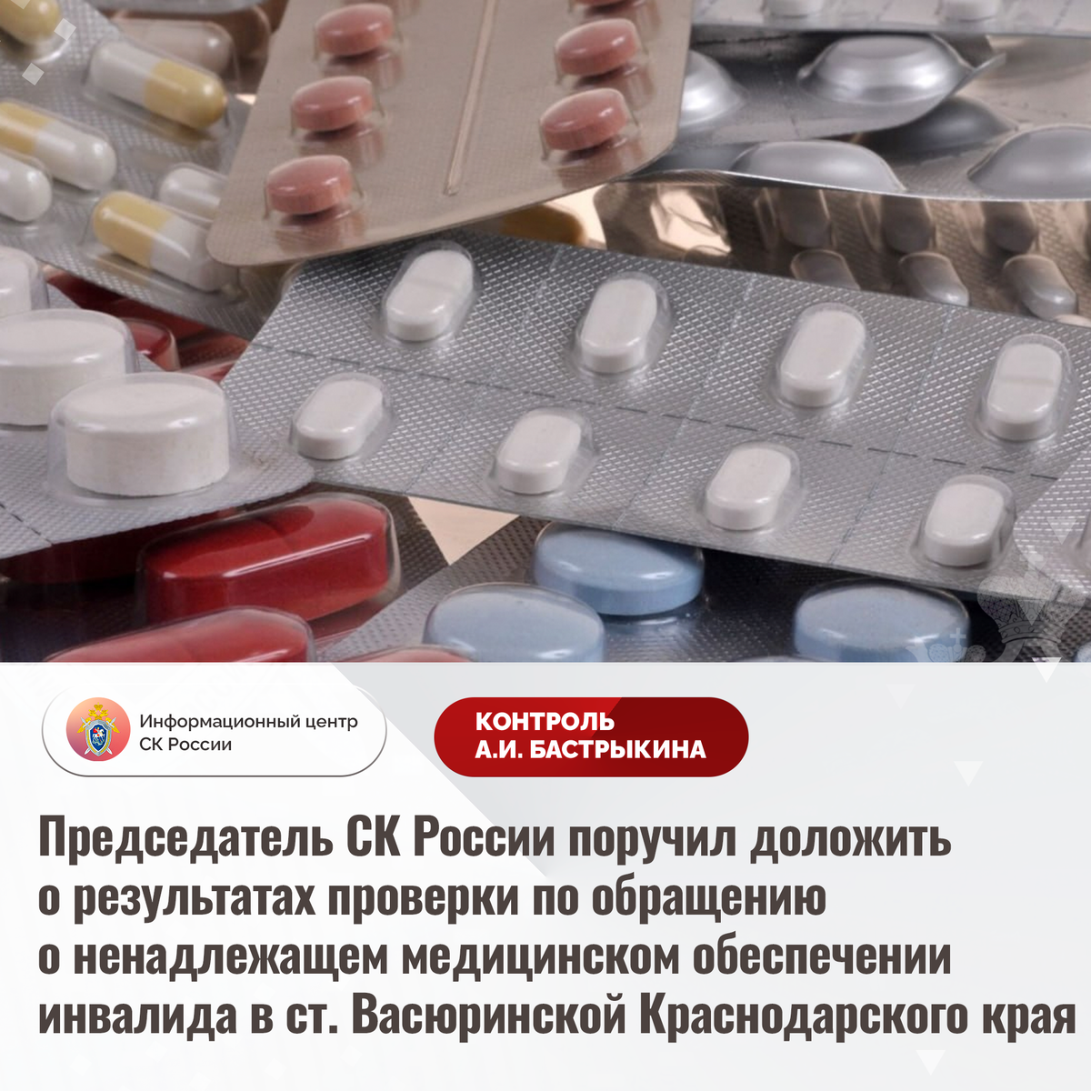 Председатель СК России поручил доложить о результатах проверки по обращению о ненадлежащем медицинском обеспечении инвалида в ст. Васюринской Краснодарского края