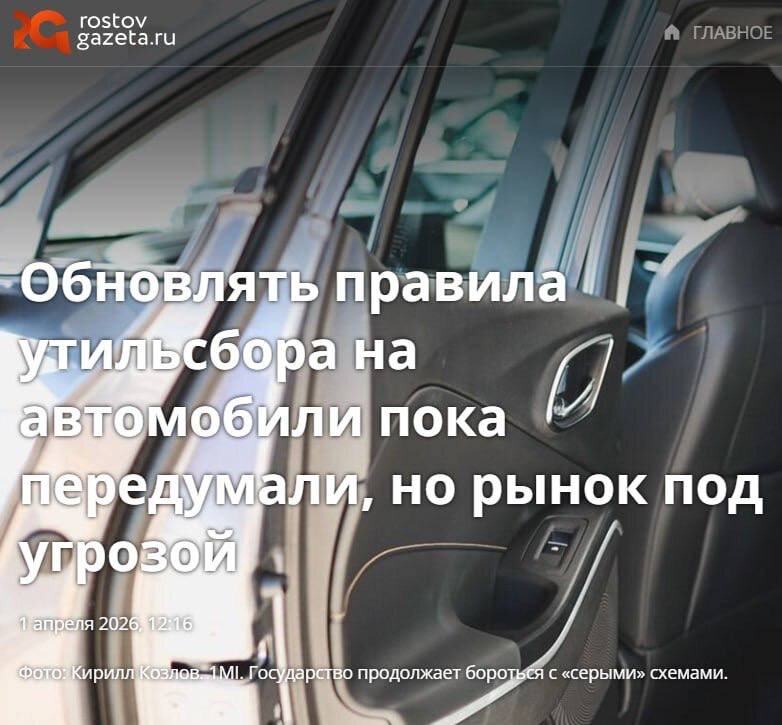🛠️ Друзья, я дал комментарии сразу трём СМИ по поводу переноса обновления утильсбора на автомобили. 📌 С 1 апреля планировалось серьёзное повышение утилизационного сбора, но Минпромторг решил временно отложить эти изменения. Однако рынок всё равно остаётся в напряжении. 💬 В своих комментариях я отметил следующее: «Перенос — это, безусловно, хорошая новость для рынка и потребителей в короткой перспективе. Но проблема никуда не исчезла. Если правила утильсбора в итоге всё-таки ужесточат, мы можем получить резкий рост цен на новые и особенно на подержанные автомобили, сокращение выбора и дополнительные удары по дилерам и логистике.» 🔗 Подробно мои комментарии можно прочитать в следующих материалах: • Ростовская газета — «Обновлять правила утильсбора на автомобили пока передумали, но рынок под угрозой» https://rostovgazeta.ru/news/2026-04-01/obnovlyat-pravila-utilsbora-na-avtomobili-poka-peredumali-no-rynok-pod-ugrozoy-5572320 • Atas — «Обновление автомобильного утильсбора с 1 апре