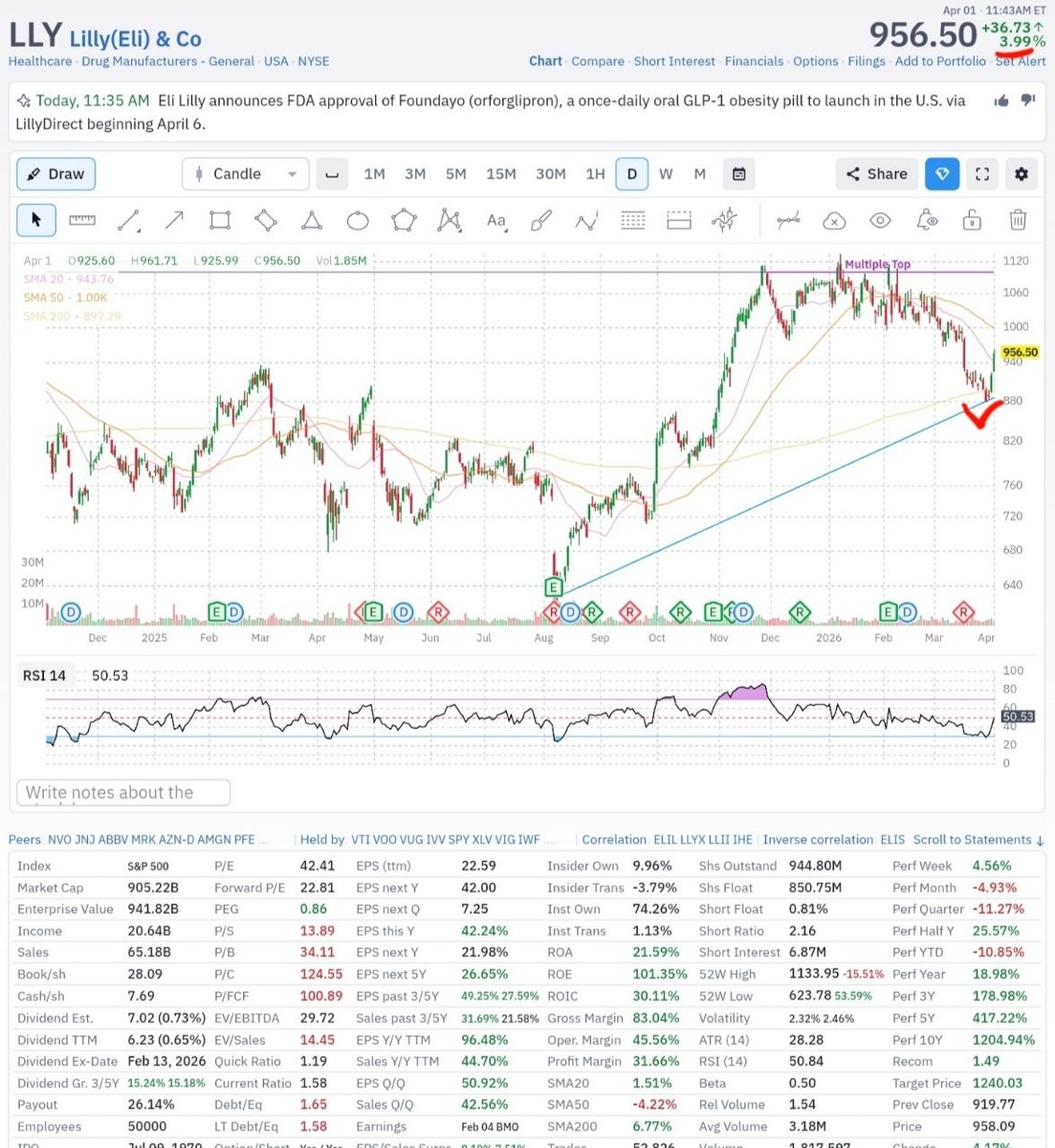 Как заявила #LLY, таблетка GLP-1, разработанная ею, является важной вехой для базирующегося в Индианаполисе производителя лекарств и позволит проверить рынок новых препаратов для снижения веса. Компания Lilly сообщила, что препарат Foundayo, принимаемый 1 раз в день, начнет поставляться через платформу прямых продаж LillyDirect в понедельник и вскоре после этого станет доступен в аптеках и на платформах телемедицины. Люди, имеющие страховку, смогут платить $25 в месяц, используя купон от Lilly, а те, кто оплачивает препарат самостоятельно, смогут платить от $149 до $349 в зависимости от дозировки. Одобрение получено всего через несколько месяцев после того, как компания Lilly подала заявку на регистрацию препарата в FDA в рамках программы, предоставляющей ускоренную проверку лекарств, которые считаются приоритетными на национальном уровне. Это означает, что Lilly представит свой препарат Foundayo примерно на 3 месяца позже, чем препарат Wegovy от Novo Nordisk #NVO, что создаст предпо