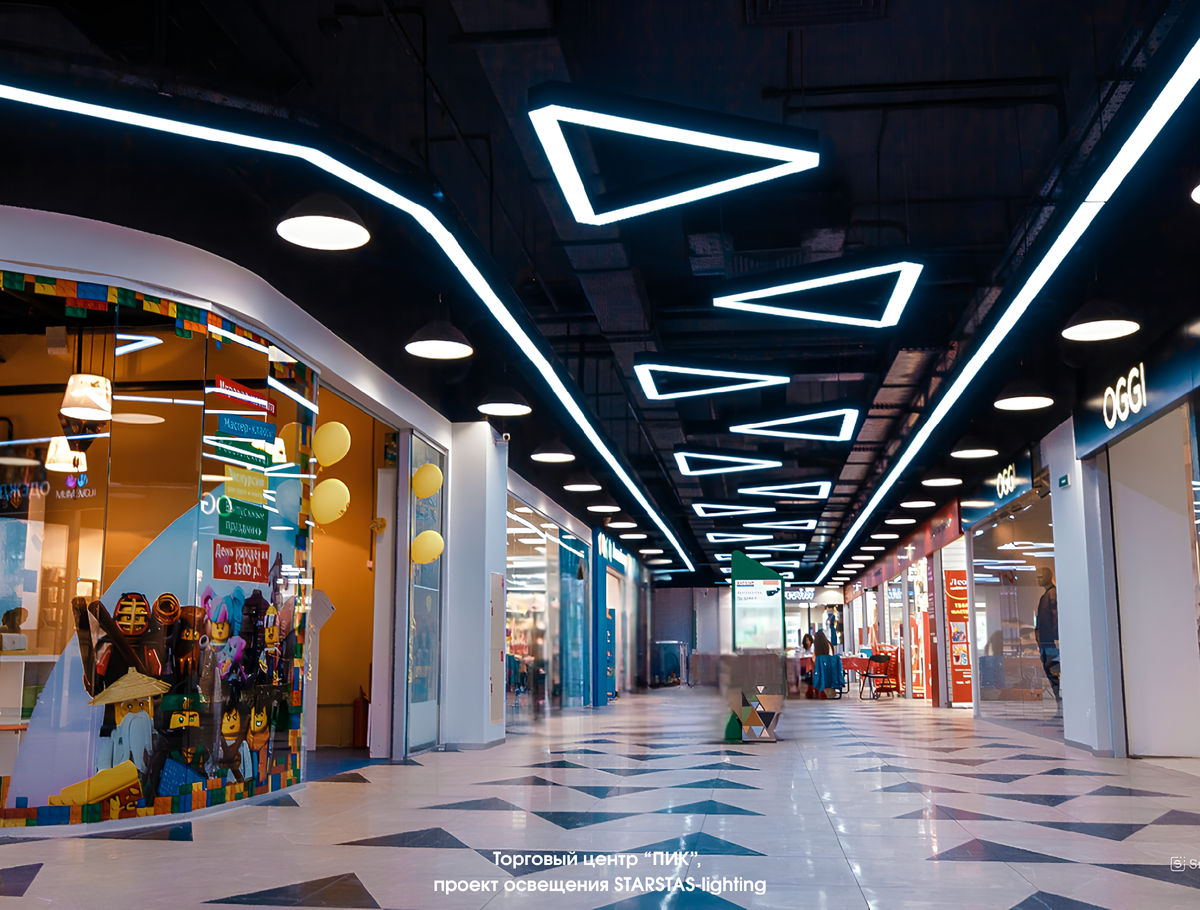 Освещение в торговых центрах играет ключевую роль: оно влияет на восприятие пространства, удобство навигации, привлекательность витрин и даже продажи. Грамотно спроектированное освещение создаёт приятную атмосферу, акцентирует ключевые зоны и обеспечивает комфорт посетителей. Правильное освещение торгового центра — это не только комфорт и функциональность, но и инструмент продвижения бренда. Команда STARSTAS-lighting разрабатывает комплексные решения под любой ТЦ: от равномерного общего освещения до эффектных акцентных сцен, повышающих привлекательность и удобство пространства.