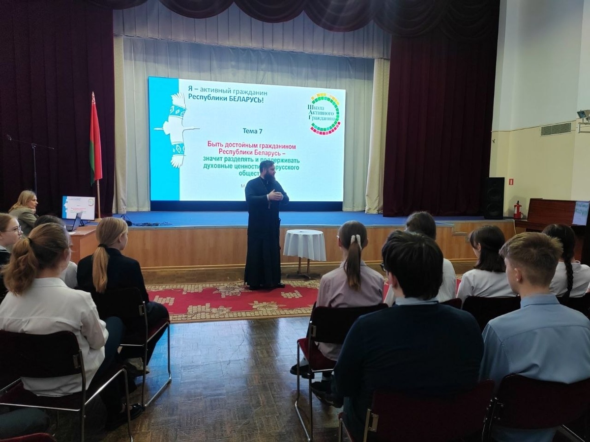 достойным гражданином Республики Беларусь — значит разделять и поддерживать духовные ценности белорусского общества». Священнослужители благочиния стали активными участниками диалоговых площадок, рассказав молодежи о неразрывной связи патриотизма и христианской веры. Основное внимание уделили духовному подвигу великих просветителей белорусской земли: преподобной Евфросинии Полоцкой, святителя Кирилла Туровского, Симеона Полоцкого и праведной Софии, княгини Слуцкой. Благочинный Пуховичского церковного округа иерей Григорий Целков выступил перед гимназистами и старшеклассниками города Марьина Горка, раскрыв христианские традиции как фундамент общества. Подробности