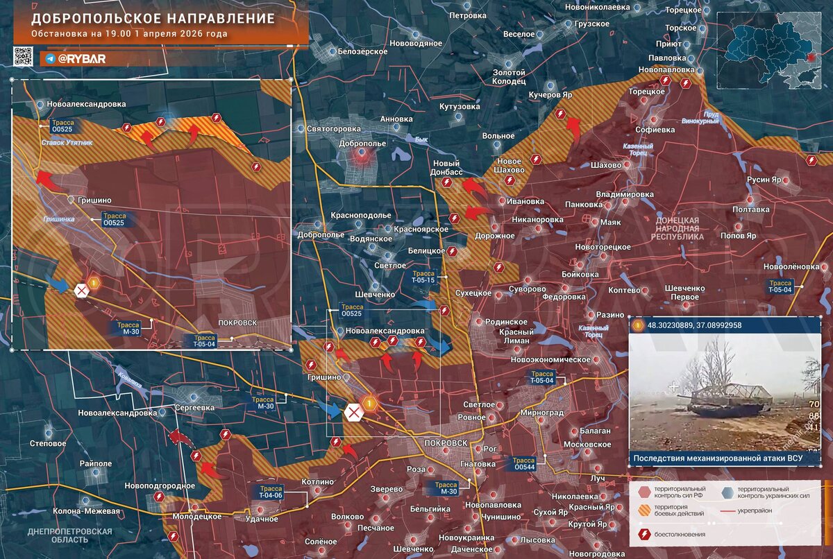 На Добропольском направлении до недавнего времени продолжались тяжелые бои силами малых групп, где и ВС РФ, и украинские формирования проводили атаки двойками-тройками в условиях крайне сложной дронной обстановки. 🔸А теперь ВСУ предприняли достаточно масштабный штурм, отправив несколько единиц бронетехники по трассе М-30 к западным окраинам Покровска. Противник намеревался воспользоваться туманом и проскочить к окраинам города. 🔸Это произошло ровно там же, где враг несколько месяцев назад уже предпринимал аналогичную попытку прорыва на бронетехнике, кончившейся аналогично. Несколько десятков членов ВСУ были уничтожены, а техника сожжена. 🔸На рубеже Гришино — Родинское, атакуют уже российские подразделения. На этом участке атаки ведутся силами малых групп, которые пытаются продвинуться через лесополосы в сторону Шевченко. ❗️С учетом текущей динамики развития событий, Добропольское направление пока будет оставаться ареной действия малых групп, которые будут пытаться продвинуться с опо