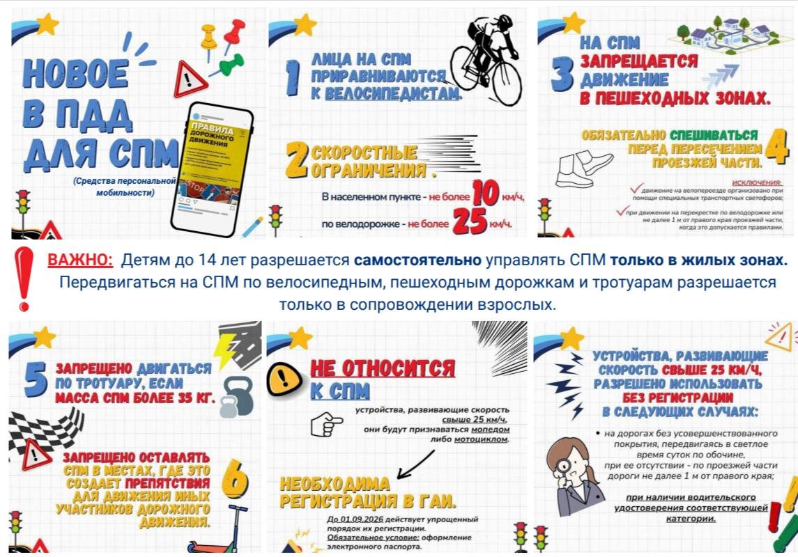 образования Республики Беларусь🛴⚠️ 📌 Главное, что нужно знать: ➡️ Детям до 14 лет можно ездить самостоятельно ТОЛЬКО в жилых зонах (дворы). Для поездок по тротуарам и велодорожкам обязательно нужен взрослый. ➡️ Запрещено движение в пешеходных зонах. ➡️ Обязательно спешиваться перед переходом проезжей части. ➡️ Для некоторых устройств требуется регистрация в ГАИ. Берегите себя и окружающих! Поделитесь этой информацией с теми, кто пользуется самокатами и другими СПМ.