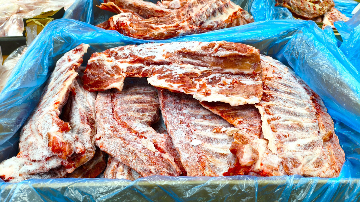 Ребра из свинины категории Б, весовые. Цена 133,2 рубля.