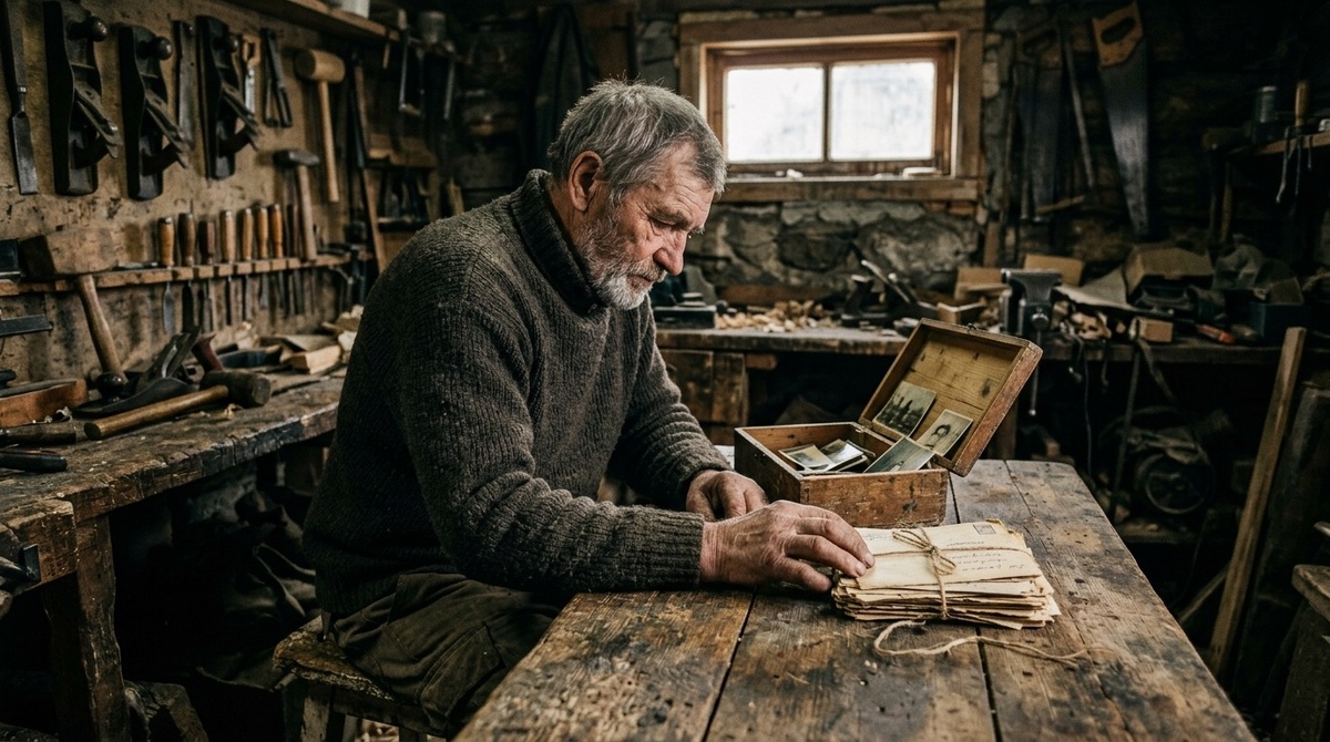 Голос у Сергея был странный. Не тревожный – другой. Приглушённый, как будто он боялся спугнуть что-то. Я обернулась. Он стоял у верстака, смотрел вниз. В руках держал плоскую деревянную коробку – некрашеную, самодельную, с простой металлической защёлкой. Размером с обувную, но тоньше.