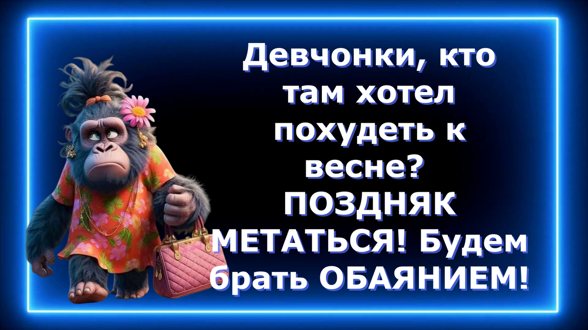 Девочки, внимание! На календаре весна, а это значит, что пришло время подумать о своей фигуре! Ведь куртка больше не скрывает нашу «богатую внутреннюю жизнь». Если за зиму мы так усердно «утеплялись» изнутри, что теперь напоминаем уютный стог сена, не паникуем. Мы не толстые! Просто инвестиции в тортики оказались слишком успешными. Рассыпьте по полу пачку гречки и собирайте по одной крупинке. Наклон, приседание, наклон. И дом чистый, и пресс, наверное, появится. А можно просто купить зеркало, которое стройнит. Или завести подруг, которые едят больше вас. Окружение — это 90% успеха! Каждый раз перед едой трижды произносите: «Жир-жирок уходи на чей-то другой бок!». Если не сработает — значит, у вас слишком добрая аура, и вы просто не можете желать зла другим людям. Девочки, лето наступит в любом случае. Похудеем мы на 10 кг или или нет. Главное помнить: хорошего человека должно быть много, а очень хорошего — еще больше! Любите свои складочки. Они — это память о самых вкусных моментах зи
