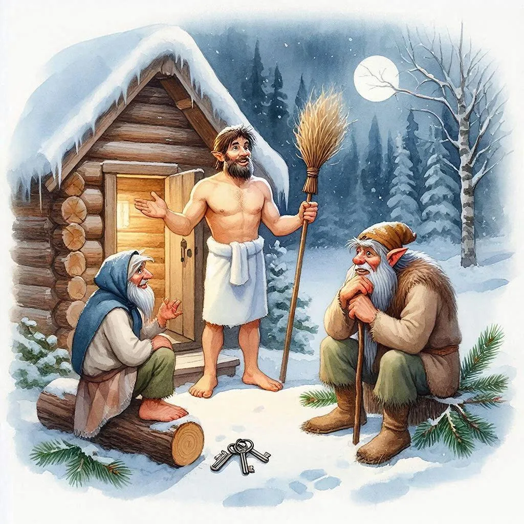 -- Ребята, вы оба молодцы. А я просто дорогу к бане и из бани запутываю -- вот где искусство! *** Банник жалуется другу: