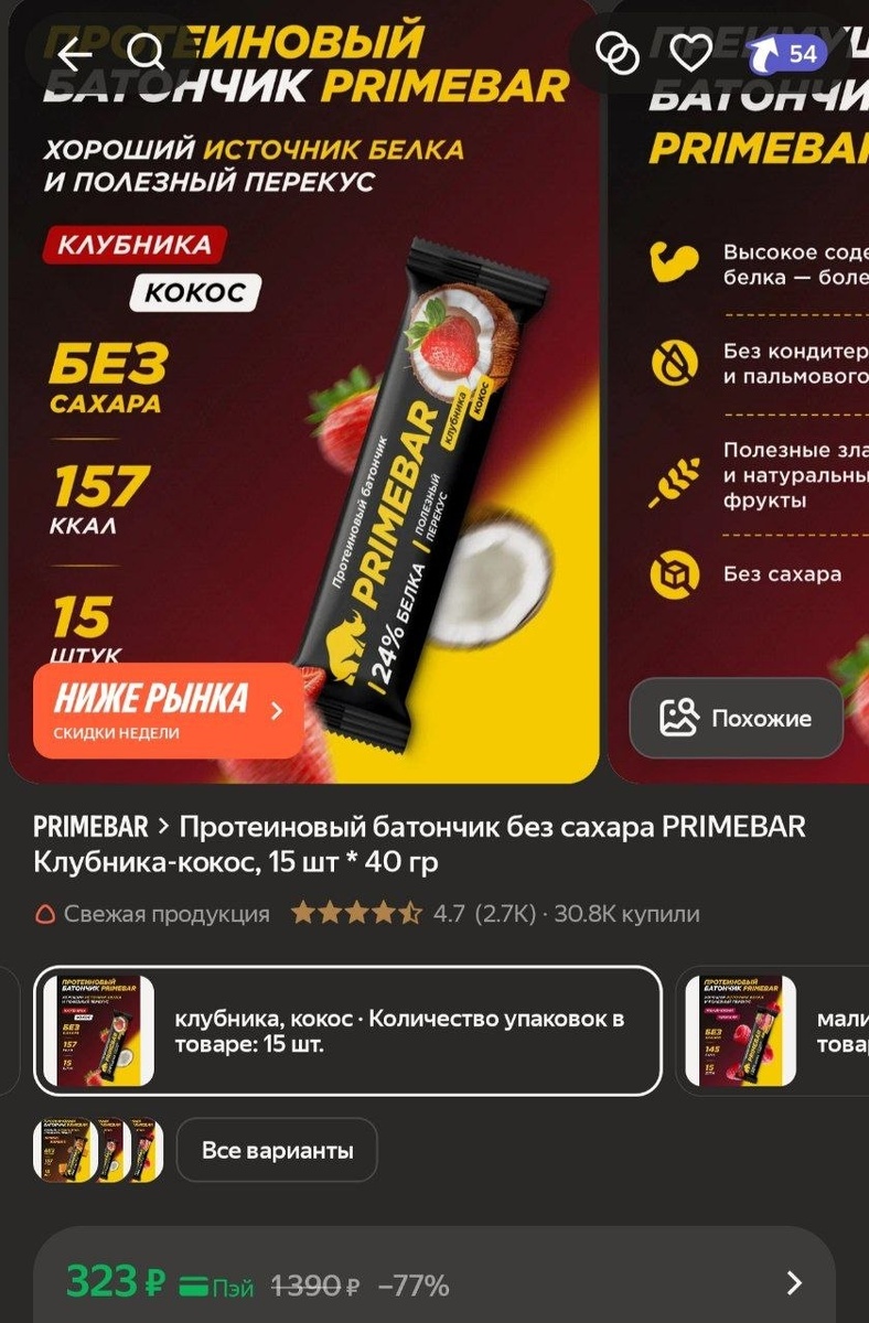 Протеиновый батончик без сахара PRIMEBAR Клубника-кокос, 15 шт * 40 гр