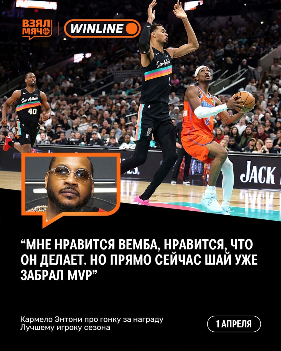 🗣 «Мне нравится Вемба, нравится, что он делает. В будущем он будет лидировать во многих статистических показателях. Но прямо сейчас Шай уже забрал MVP. Он проводит ещё более сильный сезон, чем в прошлом году, набирает очки с высокой эффективностью, решает в клатче и ведёт команду к топ-результату. Если это не Лучший игрок сезона — тогда я не знаю, что это. Если он возьмёт награду, то встанет в один ряд с Леброном Джеймсом, Майклом Джорданом и Биллом Расселлом», — заявил Энтони. Споры о MVP этого сезона ещё долго не утихнут 🔥 🏀 ПОДПИШИСЬ — ЗДЕСЬ ЖИВЁТ БАСКЕТБОЛ!