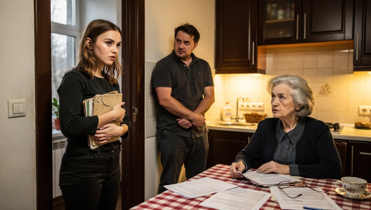 Марина замерла на пороге собственной квартиры, не веря своим глазам. На её любимой клетчатой скатерти, рядом с пустой сахарницей и знакомой вазочкой с сухим печеньем, лежала аккуратная стопка документов с гербовыми печатями. Мужчина в строгом костюме с кожаным портфелем у ног что-то терпеливо объяснял свекрови, водя шариковой ручкой по строчкам.