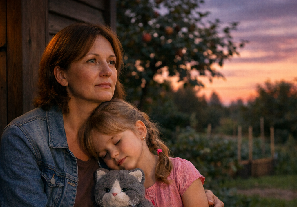 В августе Марина приехала. Алла открыла калитку и увидела дочь — похудевшую, с короткой стрижкой, с новыми серёжками, которые Алла никогда раньше не видела. Марина вошла в дом и позвала: «Лиза!» Лиза вышла из комнаты. Посмотрела на мать. Не бросилась. Не заплакала. Стояла и смотрела, как смотрят на человека, которого помнят, но которому уже не доверяют на слух. Марина присела, обняла её. Лиза не отстранилась, но и не обняла в ответ. Стояла в маминых руках, как стояла в первый день — чемодан в прихожей. Марина подняла голову и посмотрела на Аллу. В глазах был вопрос, на который Алла не собиралась отвечать.