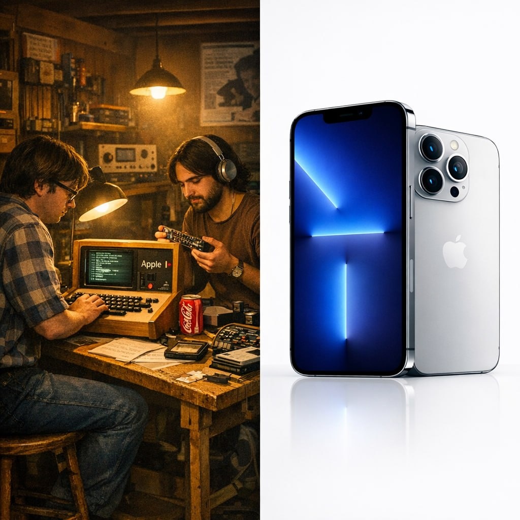 ДВА СТИВА ИЗ ГАРАЖА ИЗМЕНИЛИ МИР 1 апреля 1976. Гараж в Калифорнии. Друзья подписали бумагу — и началась эпоха. 🔧 С ЧЕГО ВСЁ НАЧАЛОСЬ Возняк собирал компьютеры ради интереса. Джобс увидел в этом бизнес. Apple I — плата без корпуса за 666 долларов. Купили 200 штук. Хватило чтобы начать. 💻 НОВЫЕ ПРАВИЛА До Macintosh компьютер управлялся командами — нужно было знать код. Mac показал мышь и иконки. Впервые машина заговорила с человеком на его языке. 🔬 НАУКА ВНУТРИ iPhone Акселерометр, гироскоп, лидар, нейронный чип — датчиков больше чем в лаборатории 1980-х. Face ID строит карту лица из 30 000 точек за миллисекунды. 📱 ГЛАВНЫЙ МОМЕНТ 2007. Джобс: «Apple изобретает телефон заново». Зал смеётся. Через 5 лет смартфон — в каждом кармане. 🌍 ЧТО ИЗМЕНИЛА iTunes, iPhone, iPad, Apple Watch — брали существующее и делали понятным миллиардам. 💡 Apple cтоит дороже ВВП большинства стран. 📝 Какой продукт Apple изменил лично вашу жизнь? #технологиинапальцах #apple #история #инновации #вече