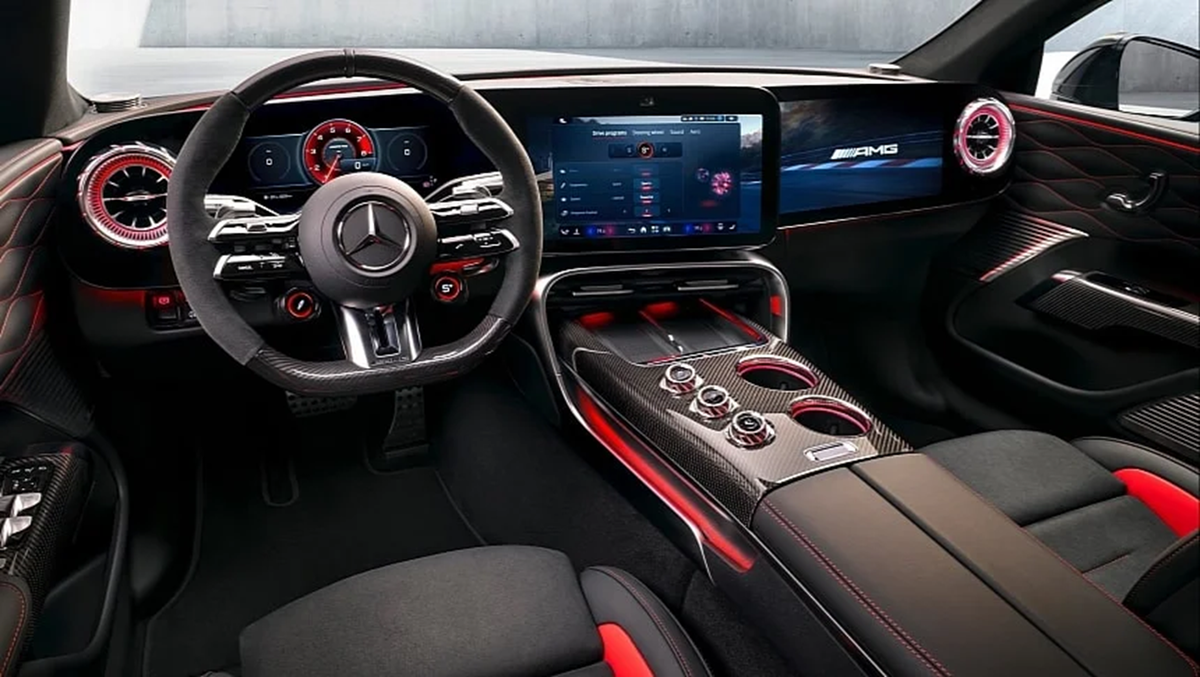Интерьер нового Mercedes-AMG GT 4-Door Coupe: крупные экраны и физические кнопки Mercedes-AMG готовит к выходу полностью электрическую версию GT 4-Door Coupe, и впервые раскрывает интерьер новинки. В центре внимания - сочетание массивных экранов и сохранение физических элементов управления. Почему производитель делает ставку на такие решения - разбираемся в деталях. Фотография: 110km.ru Появление нового Mercedes-AMG GT 4-Door Coupe с электрической силовой установкой вызвало осторожное обсуждение среди поклонников бренда и экспертов рынка. В то время как конкуренты делают ставку на минимализм и сенсорные панели, Mercedes-Benz идет своим путем, используя в салоне не только крупные дисплеи, но и привычные физические кнопки. Такой подход может стать определяющим для будущих моделей марки. Интерьер новинки был показан официально. В глаза сразу бросается массивная цифровая панель, объединяющая приборную доску и мультимедийную систему. Несмотря на тенденцию к полному отказу от физических элем