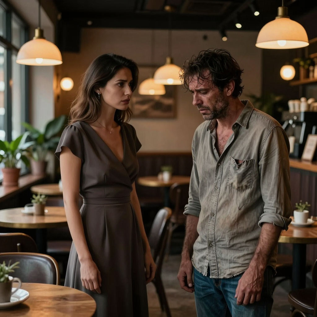 Дождь стучал по асфальту, размыв выглядел не так, как в ее воспоминаниях . ая очертания города. Вика остановилась у кафе и немного подумав решила выпить чашечку кофе. В помещении она замерла: за столиком у окна, она увидела фигуру бывшего мужа. Виктор выглядел не так как в ее воспоминаниях. Костюм, который когда-то сидел идеально, теперь выглядел мешковатым и помятым. Под глазами залегли темные круги, а волосы, всегда идеально уложенные, торчали в разных стороны. Он поднял голову, взгляды встретились. Виктор вскочил так быстро, что опрокинул чашку с кофе. Не глядя на Вику, он бросился к ней: