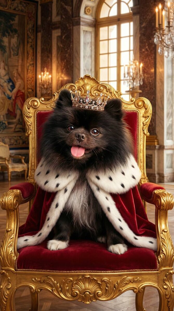 ✨✨✨✨✨✨ ИНСТРУКЦИЯ для генерации фото своего питомца 📸: ✨зайди в бот https://t.me/aibudka_bot ✨ отправь фото питомца в бот ✨ выбери Nano Banana Pro (обязательно ставь ползунок на pro для топ результата 🔛) ✨ параметры: 2K или 4К, 9:16 ✨ скопируй и вставь этот промпт: Сделай фотореалистичное фото моей собаки в образе короля. Сохранить внешность собаки с исходного фото: морду, глаза, окрас, уши, усы, породу, текстуру шерсти. Собака сидит на роскошном золотом троне в большой королевской зале, на ней дорогая бархатная мантия с меховой отделкой и аккуратная корона, которая не закрывает уши и глаза. Поза важная, спокойная, величественная, как у настоящего монарха. Ракурс строго фронтальный, на уровне глаз, симметричная композиция, без наклона камеры, без широкоугольных искажений. Вокруг мягкий тёплый свет, богатый интерьер, красные бархатные шторы, всё максимально реалистично и кинематографично. максимальный фотореализм, натуральное освещение, реалистичная шерсть, высокая детализация глаз,