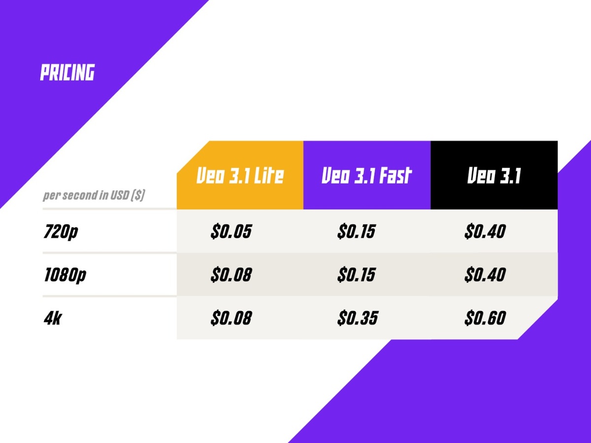 Компания Google представила Veo 3.1 Lite - наиболее экономичную модель в линейке Veo 3.1. Она предназначена для разработчиков, работающих с высокими объемами генерации видео: стоимость использования Lite более чем на 50% ниже по сравнению с Veo 3.1 Fast, при этом модель демонстрирует сопоставимую скорость и не уступает в качестве. Что предлагает Veo 3.1 Lite? Режимы генерации: Text‑to‑Video и Image‑to‑Video; Соотношения сторон: 16:9 и 9:16; Разрешения: 720p, 1080p, 4K; Длительность: 4, 6 или 8 секунд. Модель уже доступна через платный тариф Gemini API и в Google AI Studio. Решение позволяет разработчикам гибко подбирать конфигурацию под конкретные задачи, сохраняя баланс между практической эффективностью и профессиональными возможностями. С 7 апреля запланировано снижение цен на Veo 3.1 Fast, что позволит еще большему числу разработчиков интегрировать технологии генерации видео в свои продукты.