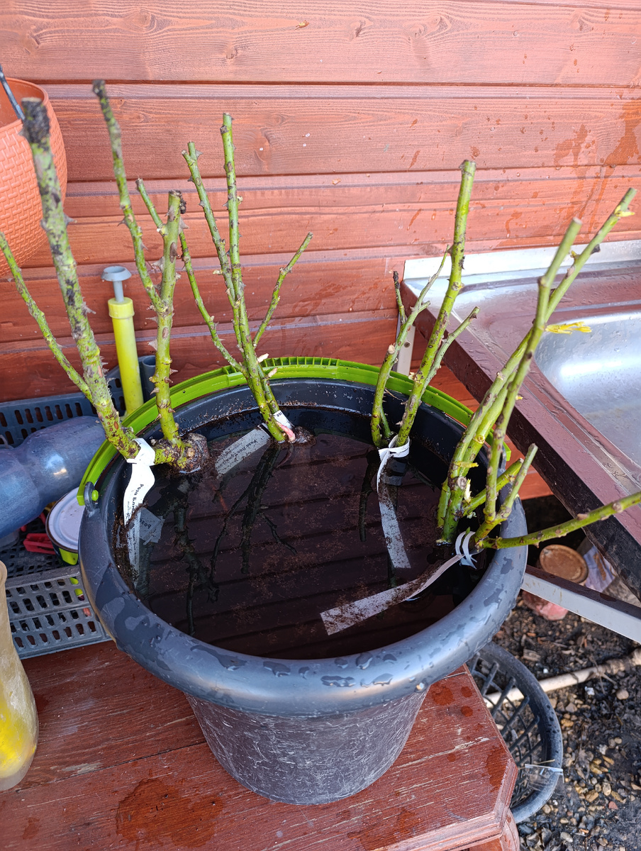 Так вот, новые розы следует замочить на ночь в ведре с водой, поскольку они с открытыми корнями.