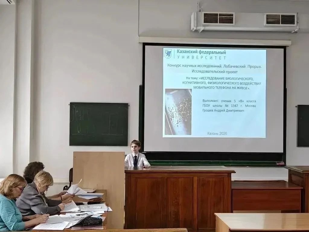 Прорыв»: покоряя научные вершины 🧠В конце марта Казань стала столицей юной научной мысли. На площадке Казанского федерального университета развернулась интеллектуальная битва финала престижного конкурса исследовательских работ «Лобачевский. Прорыв». В этом сезоне за звание лучших боролись 2136 школьников из 65 регионов страны. Дорогу в финал, сквозь строгий отбор, проложили лишь 1137 самых талантливых и упорных. 🏆 И среди этих звёздочек – наш пятиклассник Андрей из 5 «В»! Он смело представил на суд экспертов глубокую научно-исследовательскую работу по биологии «Исследование биологического, физиологического и когнитивного воздействия мобильного телефона на живой организм». 🏆Блестящая защита, глубина анализа и уверенность юного учёного покорили жюри. По итогам финала Андрей удостоен почётного III места! 👍Казань покорена его умом и талантом. Впереди — новые горизонты, новые открытия и неизведанные пути большой науки. ✨️Андрей, гордимся и верим в твой яркий научный взлёт! #ДОНМ