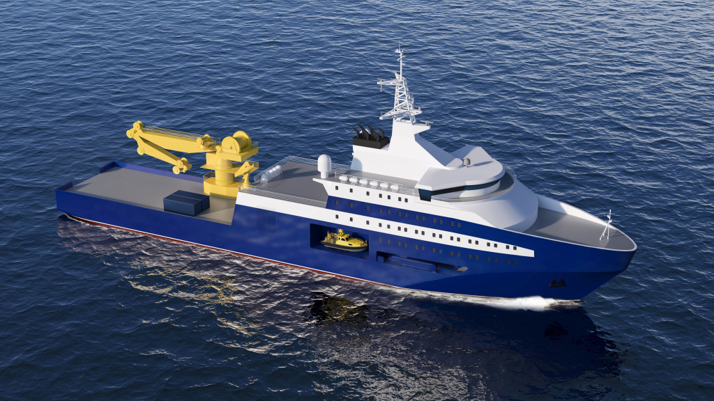 Предполагаемый облик перспективного судна подводно-технических работ от ОСК. Рендер: Пресс-служба ОСК.