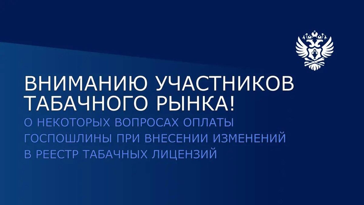 , устанавливающие новые размеры государственной пошлины за внесение изменений в государственный реестр выданных, приостановленных и аннулированных лицензий. Росалкогольтабакконтроль разъясняет актуальные вопросы оплаты госпошлины при внесении изменений в реестр табачных лицензий. Подробнее >> #Госуслуги Росалкогольтабакконтроль МАХ | ВКонтакте | Telegram