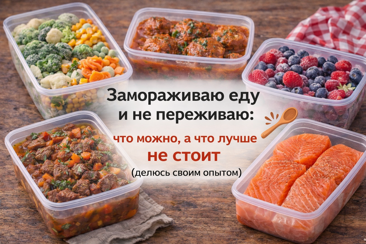 Иногда читаю комментарии и понимаю — у многих к заморозке до сих пор недоверие. Кто-то пробовал один раз и разочаровался, кто-то боится «будет невкусно», а кто-то просто не знает, как правильно. Я тоже не сразу к этому пришла. Были ошибки — и овощи становились «тряпочкой», и гарниры не радовали. Но со временем выработала свою систему, и теперь морозилка реально спасает в загруженные дни. Сегодня расскажу по-человечески — что замораживать можно, что лучше не стоит, и где я сама когда-то ошибалась. Вот эти продукты и блюда у меня идут без проблем — проверено не один раз. Готовые блюда: 👉 По моему опыту, именно такие блюда после разморозки остаются максимально «живыми» — не сухими и не безвкусными. Супы: 💡 Лайфхак: