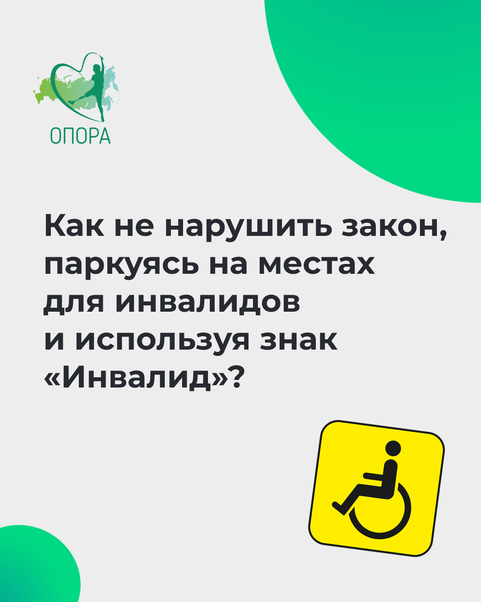В адрес «ОПОРЫ» в течение долгого времени поступают многочисленные сообщения и комментарии по поводу спорных моментов при использовании парковочных мест для инвалидов и знака «Инвалид»: 1️⃣ Как водителю, перевозящему инвалида и припарковавшему автомобиль на выделенном месте для инвалидов, подтвердить сотруднику Госавтоинспекции, что он во время парковки ожидает именно инвалида и ничего не нарушает в данный момент? Зачастую даже при внесении автомобиля в ФРИ и правомерном использовании знака «Инвалид» этот вопрос остро встает, когда водитель остается в автомобиле и ожидает инвалида, который ушел по своим делам вместе с подтверждающими инвалидность документами. 2️⃣ Как быть, когда водитель вынужден временно оставить автомобиль на выделенном месте, чтобы сопроводить инвалида, например, до входа в медучреждение или на посадку в самолет? Может ли такое кратковременное отсутствие стать причиной наступления административной ответственности и задержания транспортного средства? 3️⃣ Возможно ли