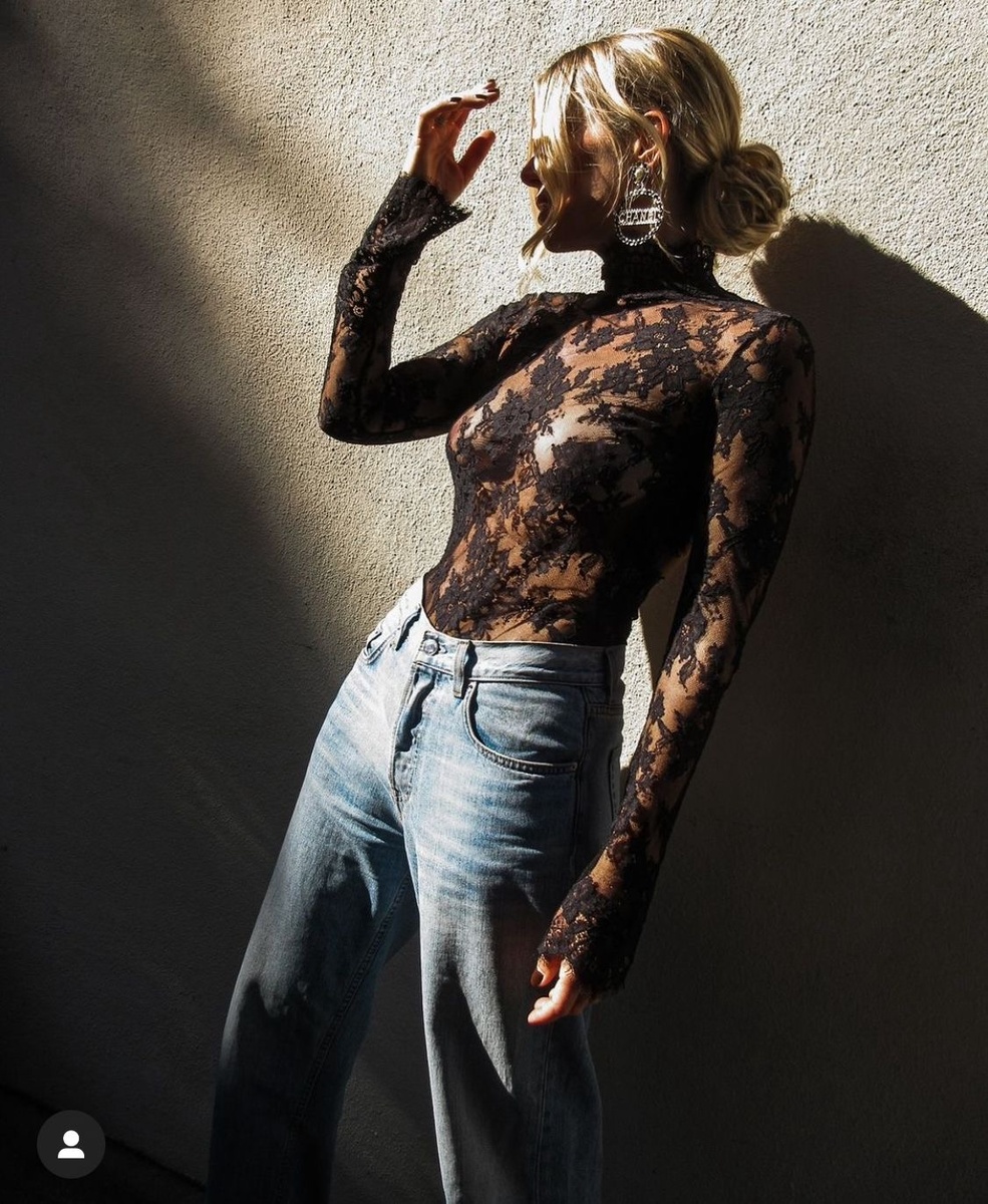 С джинсами. Классические синие джинсы создают расслабленный и стильный образ. Боди можно носить навыпуск или заправить в пояс, чтобы подчеркнуть талию. Прямые или клёш джинсы с высокой посадкой идеально сочетаются с кружевным топом. Ремень добавит структуру и завершит образ. Смело сочетайте кружево с денимом — это придаст вашему образу гармонию.