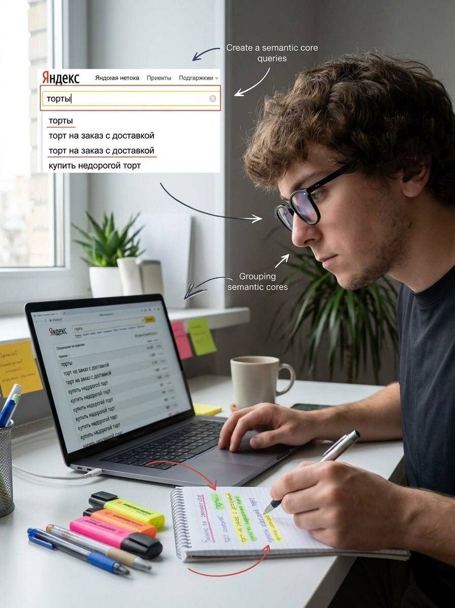 Wordstat — это бесплатный сервис от Яндекс, который анализирует поисковые запросы пользователей. Вводите ключевое слово, связанное с вашим продуктом или услугой, и получаете список популярных запросов с его упоминанием. • Например, для тематики «торты» система покажет: Эти данные формируют так называемое семантическое ядро — основу для эффективной рекламной кампании. Почему это полезно? • Как начать работу? Для доступа требуется только аккаунт Яндекса — никаких сложных настроек. Важно: Wordstat — базовый, но мощный инструмент.
