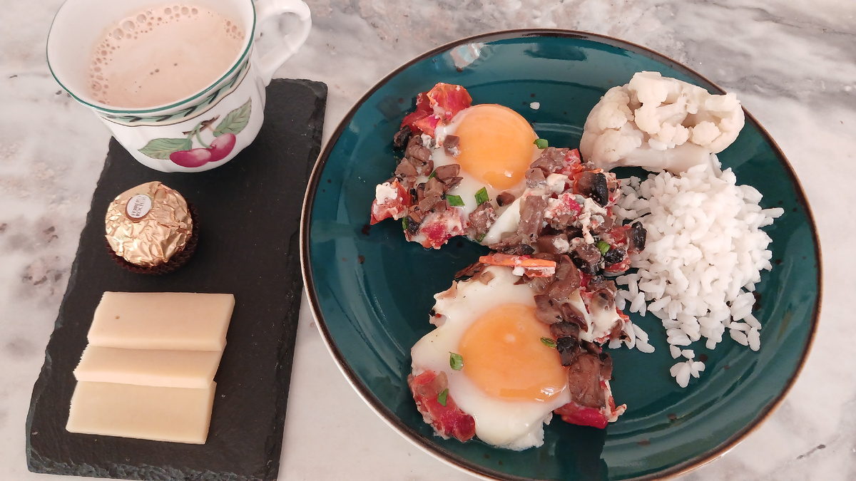 В марте питаемся на 258 руб в день на человека. Сумма в месяц на питание - 7 750 руб на одного и 15 500 руб на двоих. Завтрак сегодня вполне обычный, а вот потом уже все пошло не так. на завтрак немного риса, цветной капусты, яичница с помидорами и грибами, к чашке кофе - сыр гауда и конфета На работе было мероприятие и чаепитие - съела пару бутербродов с колбасой и чай пила с печеньем. Второй день чувствую себя не очень. У нас на работе массово уже все переболели вирусом, я вот только что сдалась. Температуры нет, но состояние так себе. Поэтому без обеда сегодня. А на ужин у меня тосты с расплавленным сыром Supreme и брусникой и чашка кофе.😇😇😇 Потом уже только горячий чай пила. Меню год назад