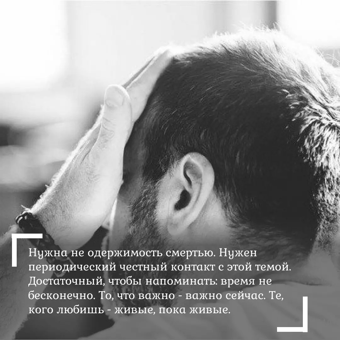 Нужна не одержимость смертью. Нужен периодический честный контакт с этой темой. Достаточный, чтобы напоминать: время не бесконечно. То, что важно - важно сейчас. Те, кого любишь - живые, пока живые.