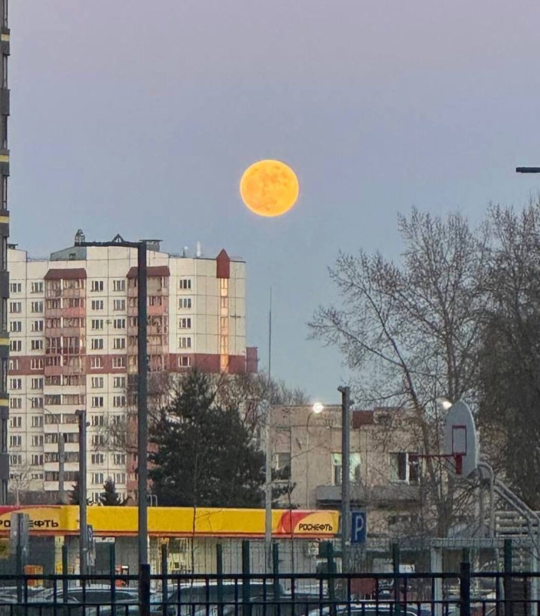 Огромную луну оранжевого оттенка увидели в небе Петербурга